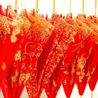 红色雨伞结婚新娘伞婚庆婚礼高档蕾丝花边刺绣大红色长柄喜庆雨伞