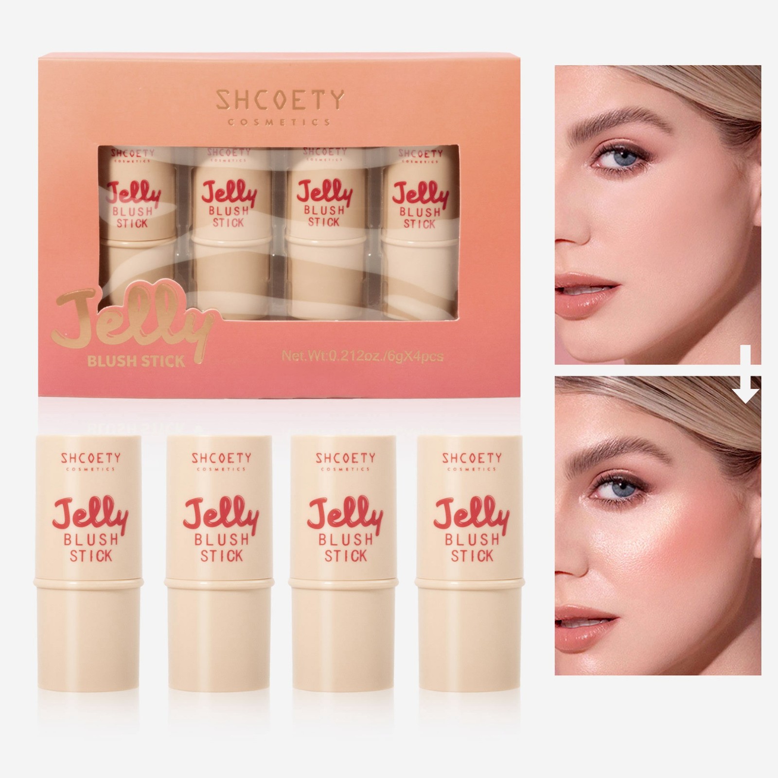 跨境爆品果冻腮红套装唇膏唇颊两用高光提亮修容棒唇彩