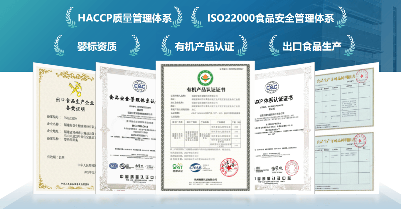 好益生拥有:完整的婴幼儿辅食生产资质、成熟的质量管理体系、严格的生产标准审核机制,无论是小批量试产还是大规模订单,好益生都能灵活应对。