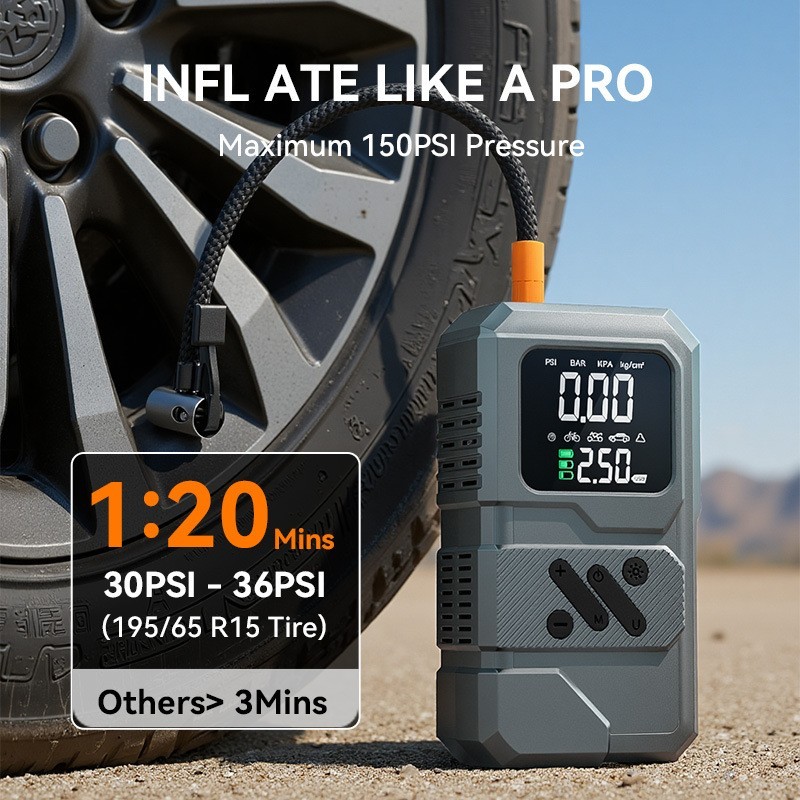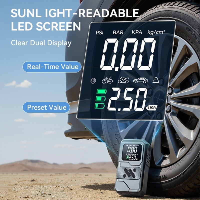 金华市山佰电器有限公司发布的便携式双屏充气泵迷你自行电动轮胎打气筒气泵手持搭电宝充气泵图集库