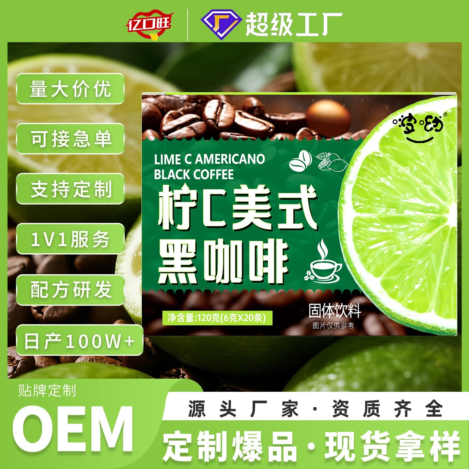 安徽亿口旺健康产业发展有限公司发布的柠C美式黑咖啡 橙C美式柚C美式速溶纯黑咖啡0脂0蔗糖商用黑咖啡图集库