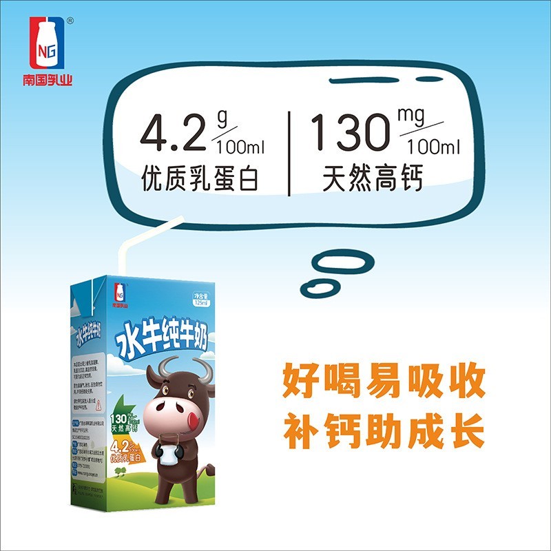 广西合浦南国乳业有限公司发布的水牛纯牛奶125ml*10盒4.2g 学生儿童全脂早餐奶图集库