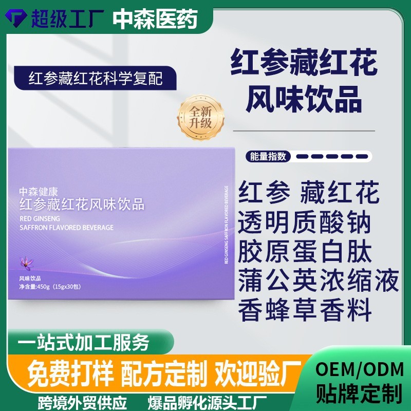 中森医药(广东)有限公司发布的贴牌代加工红参藏红花元气饮果蔬维生素人参饮品药食同源植物饮料图集库