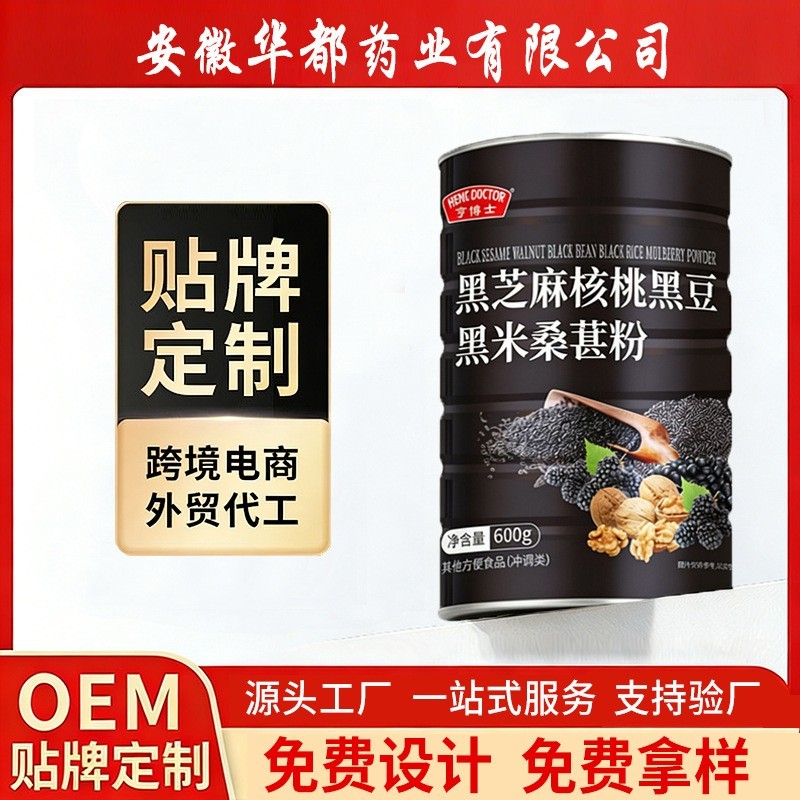 安徽亨博士保健食品有限公司发布的贴牌代工 黑芝麻核桃桑葚粉 黑芝麻糊黑豆粉五黑粉 代餐粉OEM定制图集库