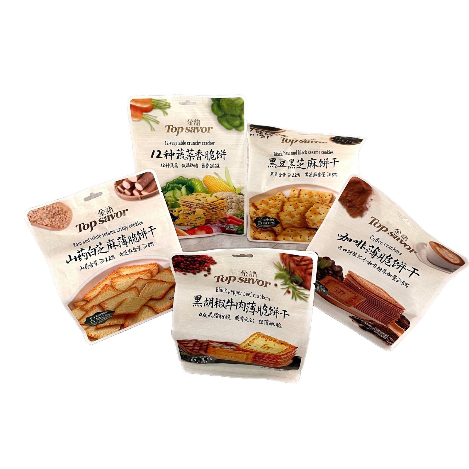 晋江市金利兴食品有限责任公司发布的208g山药白芝麻薄脆饼干黑胡椒牛肉味咖啡味蔬菜饼黑豆黑芝麻图集库