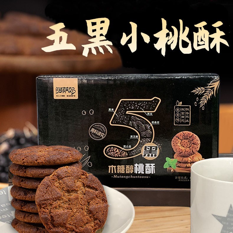 山东阿萨郊食品有限公司发布的定做五黑木糖醇谷物桃酥独立包装粗粮饼干 办公室食品休闲小零食图集库
