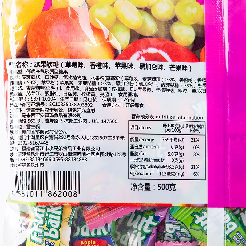 晋江思意达食品科技有限公司发布的ADM水果软糖500g袋装婚糖马来西亚风味瑞士糖爆款糖果休闲小零食图集库