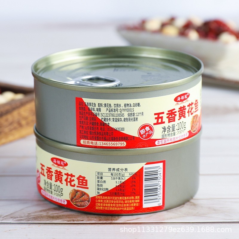 烟台那香海食品有限公司发布的支持定制海领冠小黄花鱼罐头 海鲜熟食 下饭菜 悦渔定制图集库