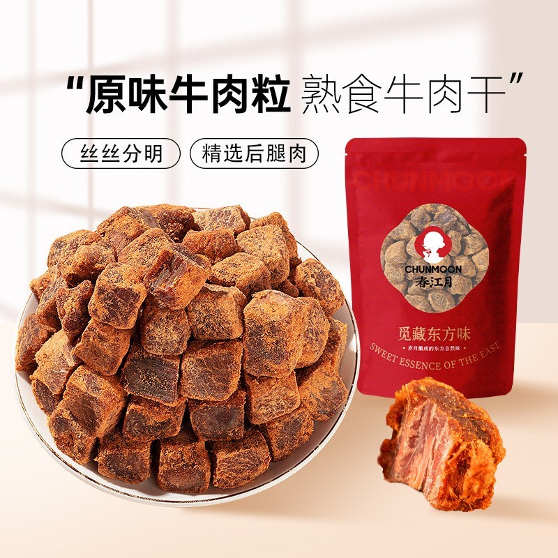 浙江慕脆生物科技有限公司发布的原切牛肉粒熟食牛肉干五香香辣解馋休闲小吃牛肉类零食品图集库