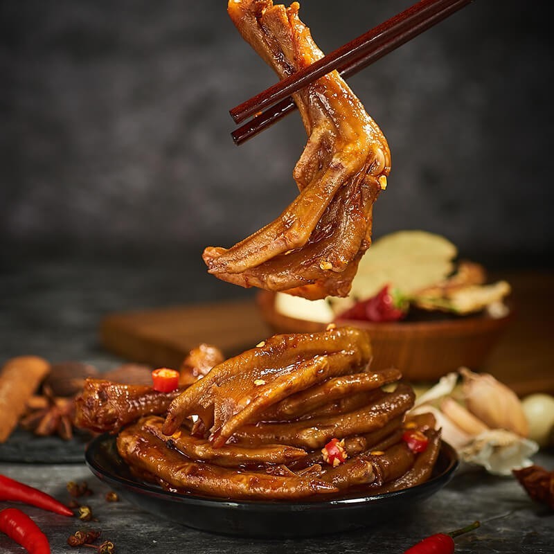 武汉零点绿色食品股份有限公司发布的麻辣鸭掌400g真空休闲卤味小吃鸭肉零食工厂麻辣鸭爪图集库