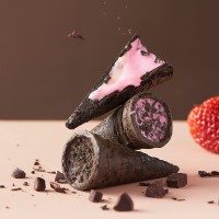 晋江市佰翔食品有限责任公司发布的爆浆冰淇淋曲奇蛋筒112克盒装巧克力草莓味脆筒儿童零食图集库