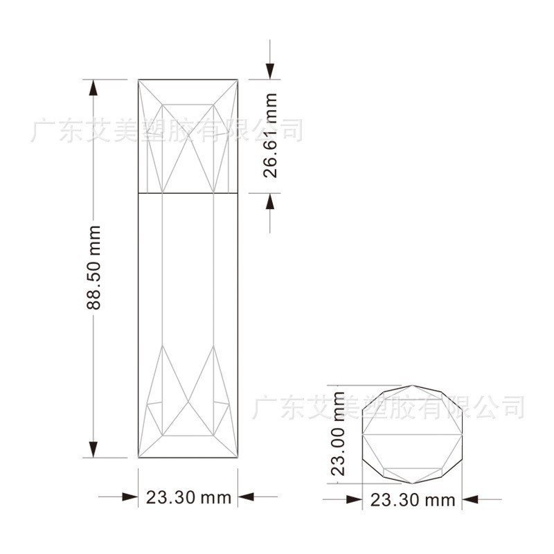 广东艾美塑胶有限公司发布的方形黑色菱形口红唇膏管 直罐口红管空管无标化妆品包材图集库