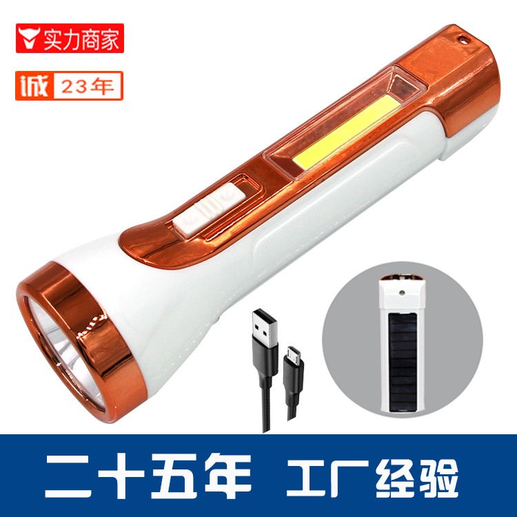 太阳能锂电池强光手电筒带侧灯OEM代加工,贴牌加工,ODM定制