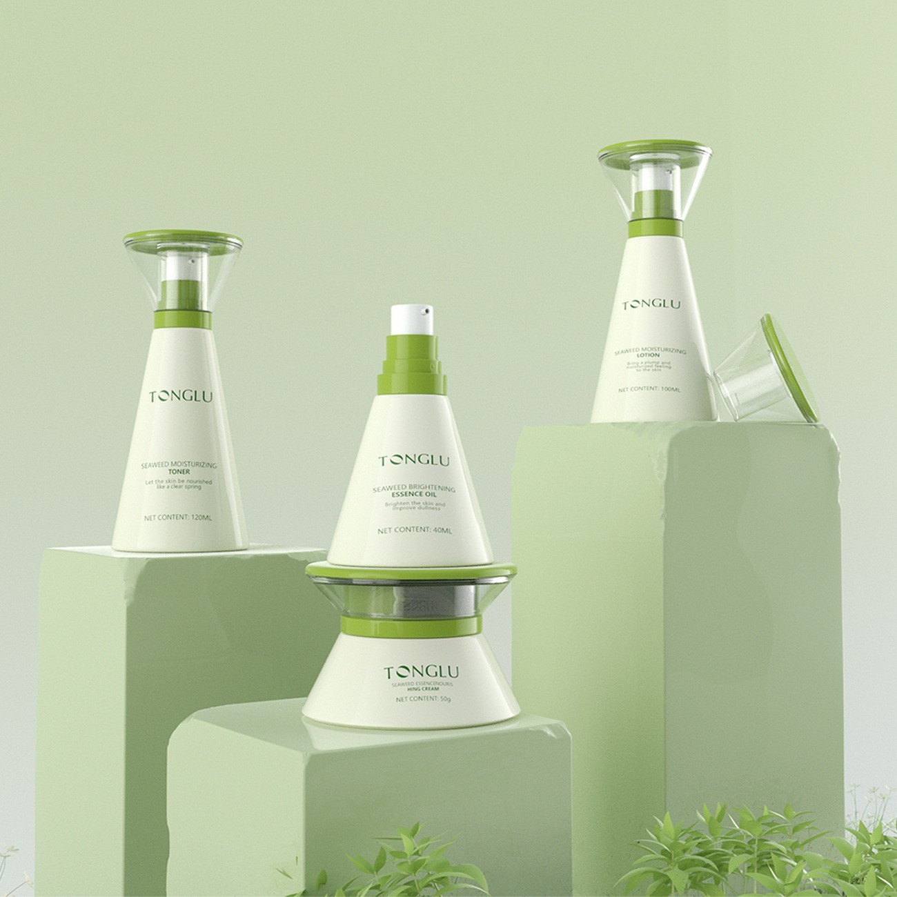 广东同路佳美玻璃制品有限公司发布的化妆品玻璃瓶包材120ml渐变套装瓶按压精油瓶锥形膏霜瓶图集库