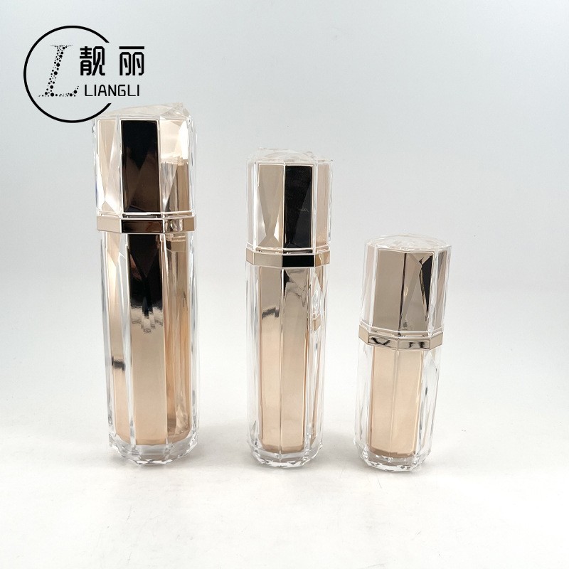 宁波市靓丽塑业有限公司发布的亚克力厚壁百角瓶30ml乳液瓶多面多棱角护肤品包材图集库