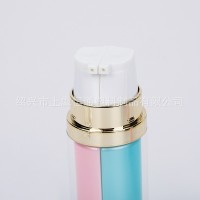绍兴市上虞恒通塑料制品有限公司发布的双管乳液系列化妆品塑料瓶 亮金按压式亚克力精华乳液瓶图集库