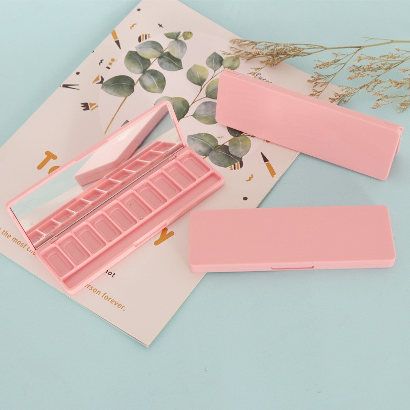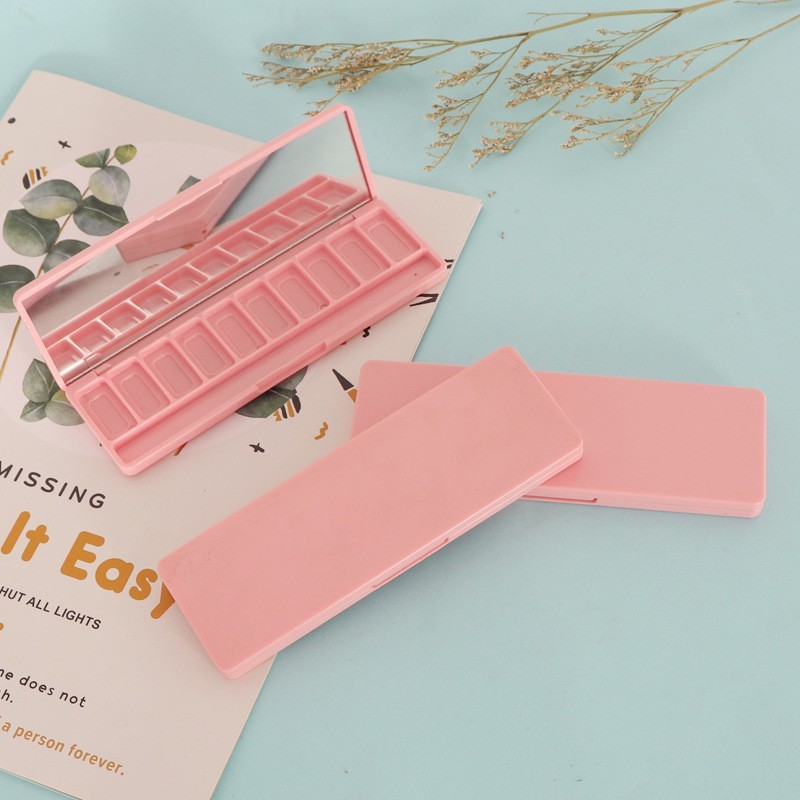 汕头市金平区中迪塑胶制品厂发布的长方形平面十格十色带刷柄槽眼影盒子包材 可做透明可配镜子图集库