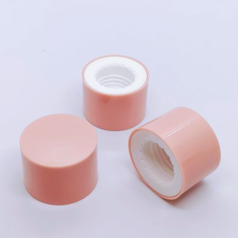 佛山市执得塑料制品有限公司发布的源头厂家定制24牙双层塑料哑面组合盖ABS/PP材质化妆品护肤品瓶盖图集库