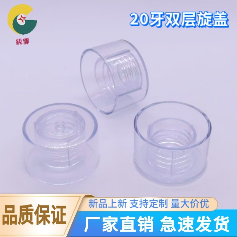 佛山市执得塑料制品有限公司发布的20牙口径高透质感塑料PP双层盖化妆品试用装小样瓶盖小分装瓶盖子图集库