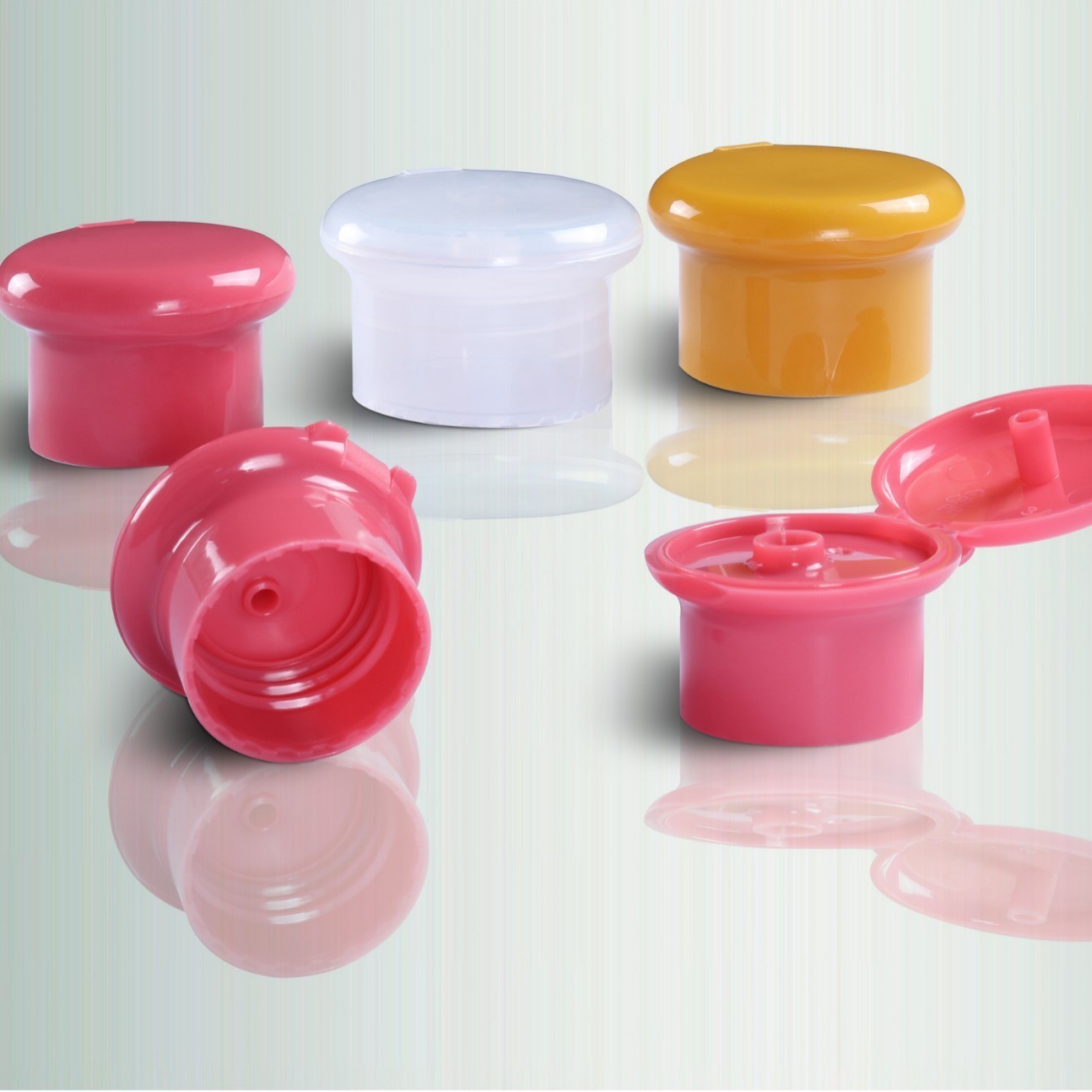 佛山市华腾东宇塑料制品有限公司发布的T24-410大头翻盖 蘑菇翻盖 平面磨砂翻盖 化妆品瓶盖 塑料瓶盖图集库