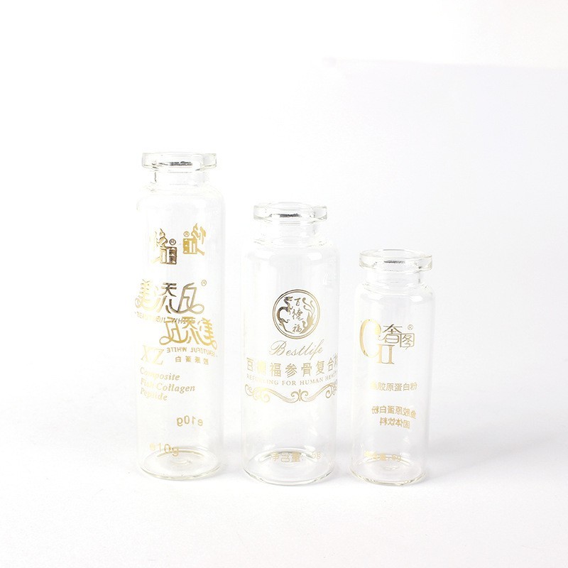 丹阳市金佳美玻璃制品有限公司发布的logo印字口服液玻璃拉管瓶卡口西林瓶透明药用管制烫金玻璃瓶厂家图集库