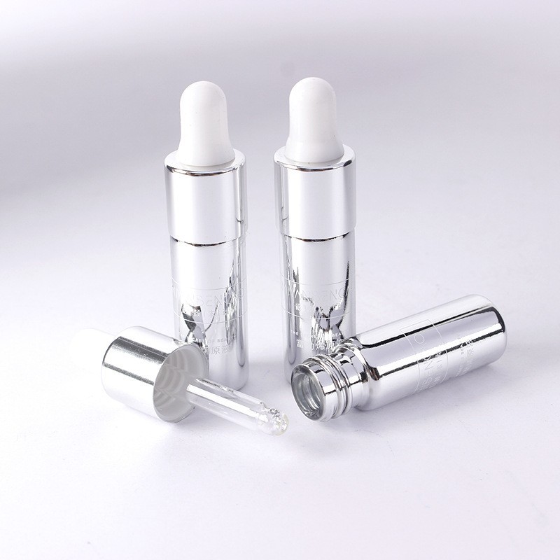 丹阳市金佳美玻璃制品有限公司发布的银色电镀精华液瓶定制5ml胶头精油滴管瓶15ml原液分装小样瓶厂家图集库