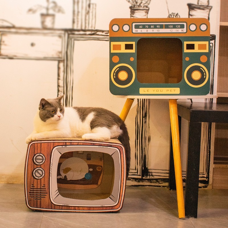 嘉兴乐优宠物用品股份有限公司发布的音机外观趣味猫玩具瓦楞纸猫屋立式猫抓板 工厂加工定制图集库