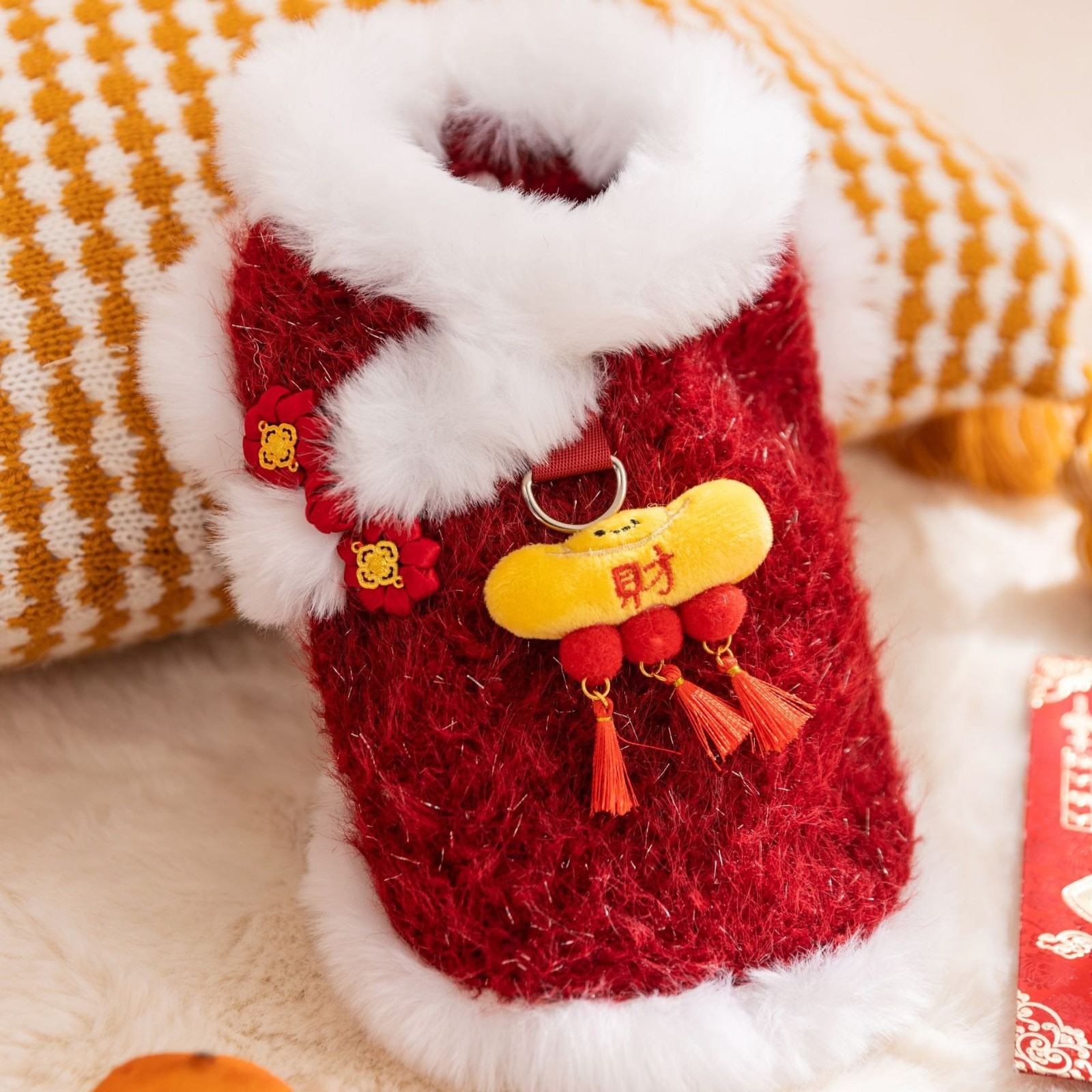 神经猫(南京)宠物用品有限公司发布的猫衣服新年唐装红色可爱醒狮发财绒衣两脚棉衣小狗狗衣服宠物衣服图集库
