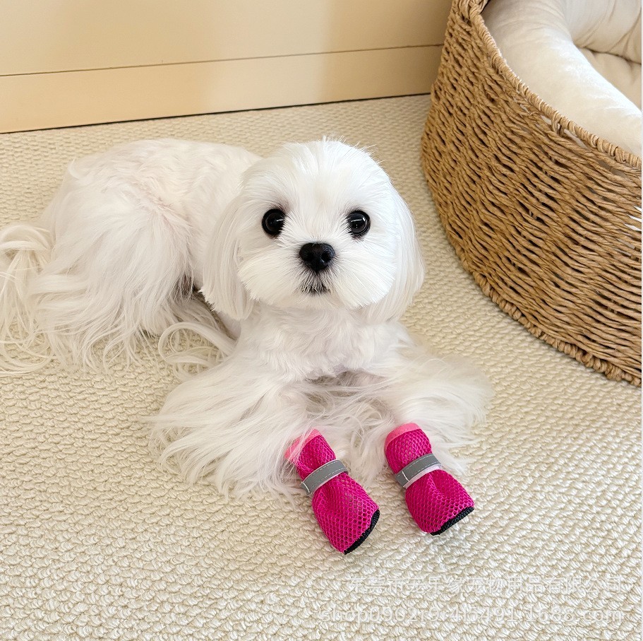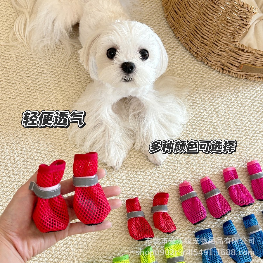 东莞市宠乐缘宠物用品有限公司发布的跨境宠物网格透气反光狗狗鞋子防滑耐磨鞋底比熊柯基中小犬网鞋图集库
