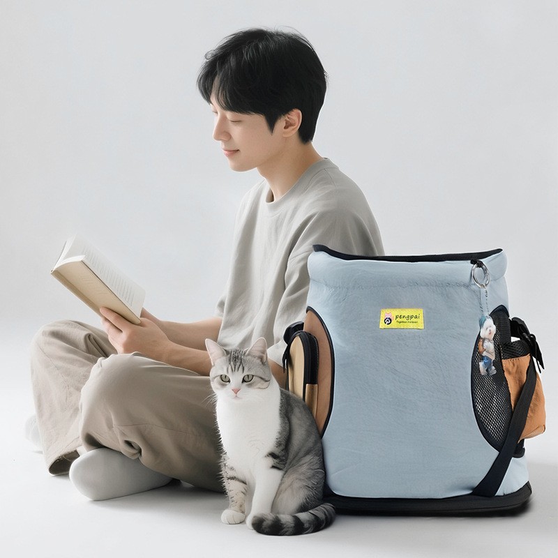 广州市朋派箱包有限公司发布的时尚宠物外出托特前置透气尼龙猫包出门猫洗澡便携双肩猫背包定制图集库