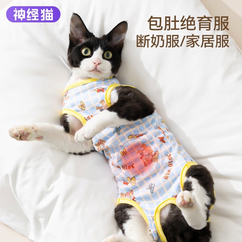 神经猫(南京)宠物用品有限公司发布的宠物术后绝育服防舔防脱德文猫透气母猫断奶服四脚包肚衣宠物衣服图集库