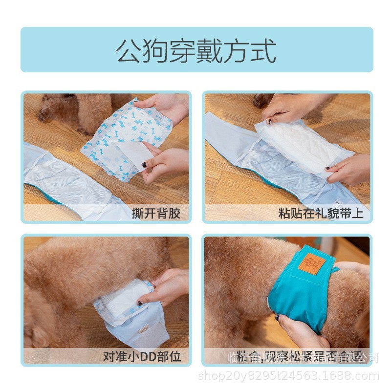 临沂福顺德卫生用品有限公司发布的宠物礼貌带搭配尿片狗狗纸尿片尿不湿泰迪公狗纸尿裤母狗护垫宠物图集库