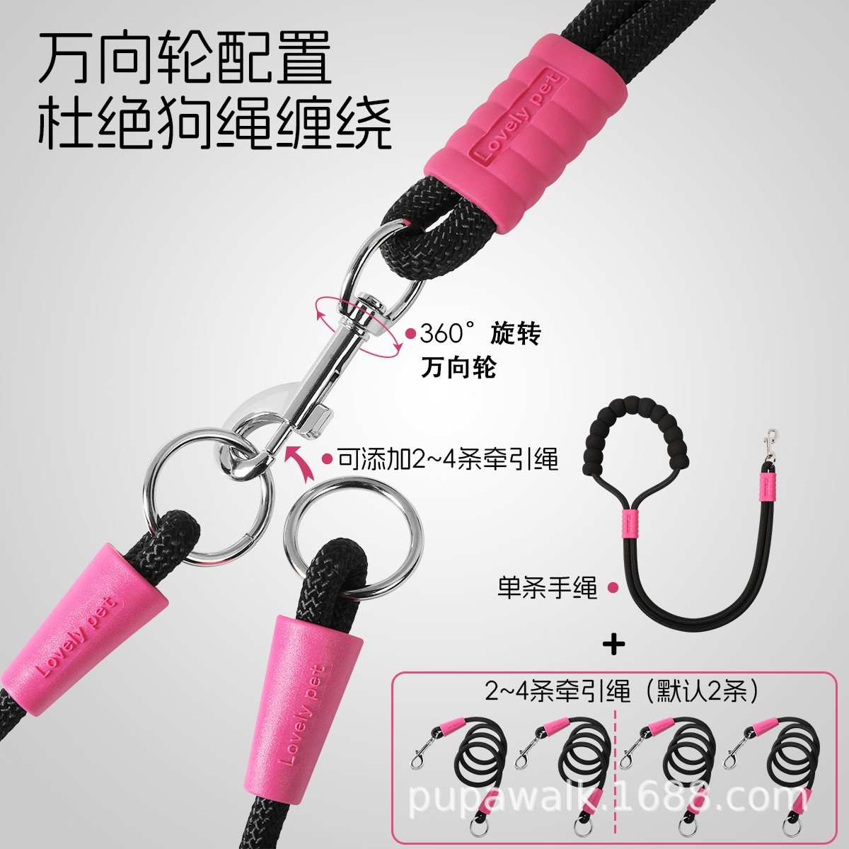 义乌市邦佳宠物用品有限公司发布的狗狗牵引绳遛狗绳中小型双狗绳耐磨多头牵引一拖二牵引带宠物用品图集库