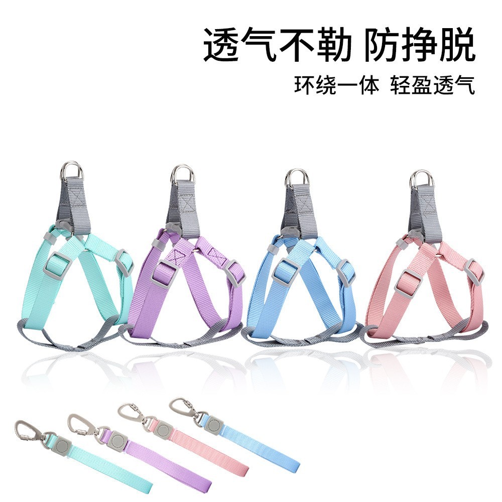 义乌市佳丰宠物用品厂发布的中小型犬可调节胸背牵引绳套装 耐磨尼龙马卡龙色 宠物狗绳图集库