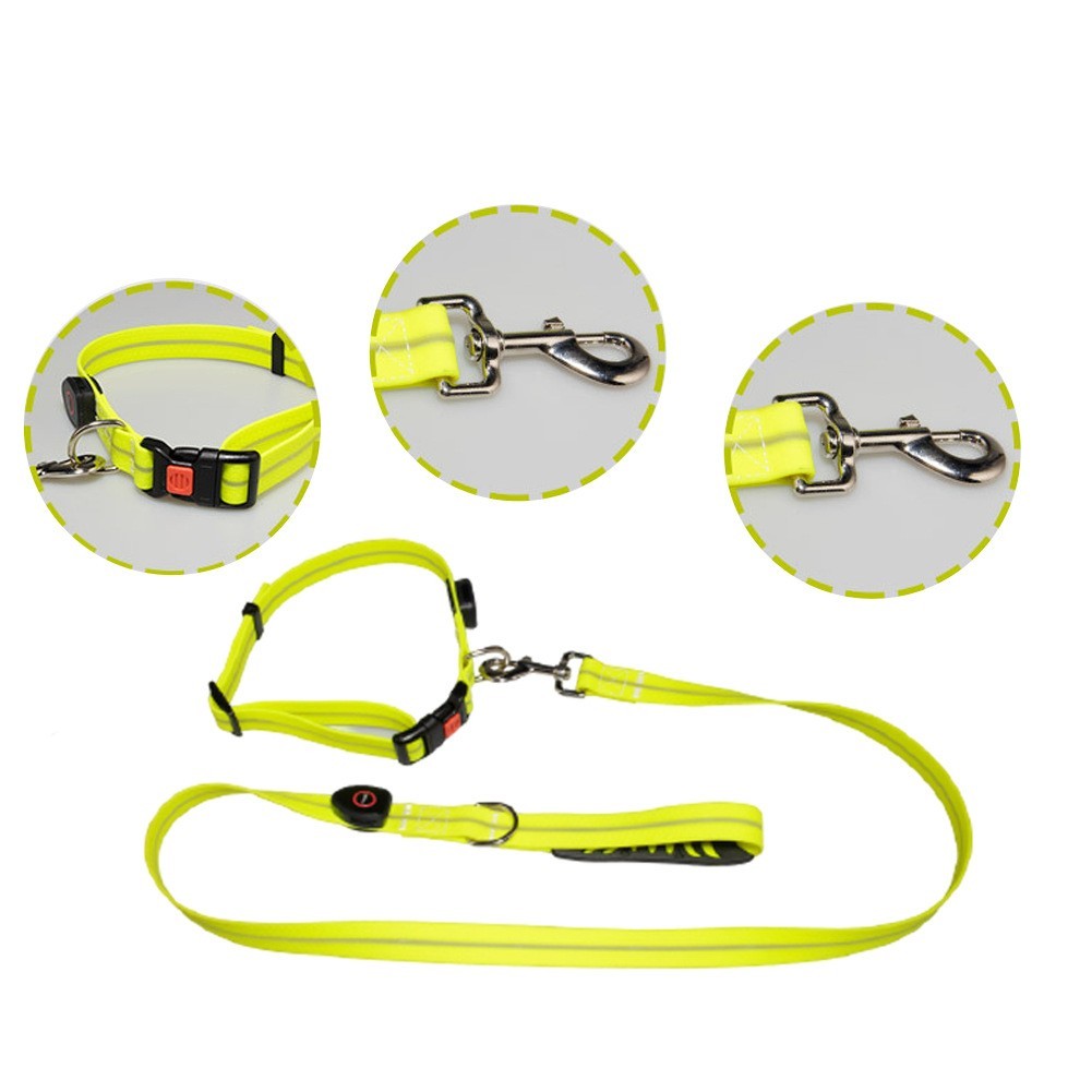 东莞市帅兔宠物用品有限公司发布的宠物用品狗狗可调节牵引绳宠物PVC材质发光项圈遛狗绳套装USB充电图集库