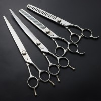 张家港市双明美发工具有限公司发布的7寸专业宠物剪刀弧度上下弯剪牙剪狗狗造型专用美容套装修毛美发图集库