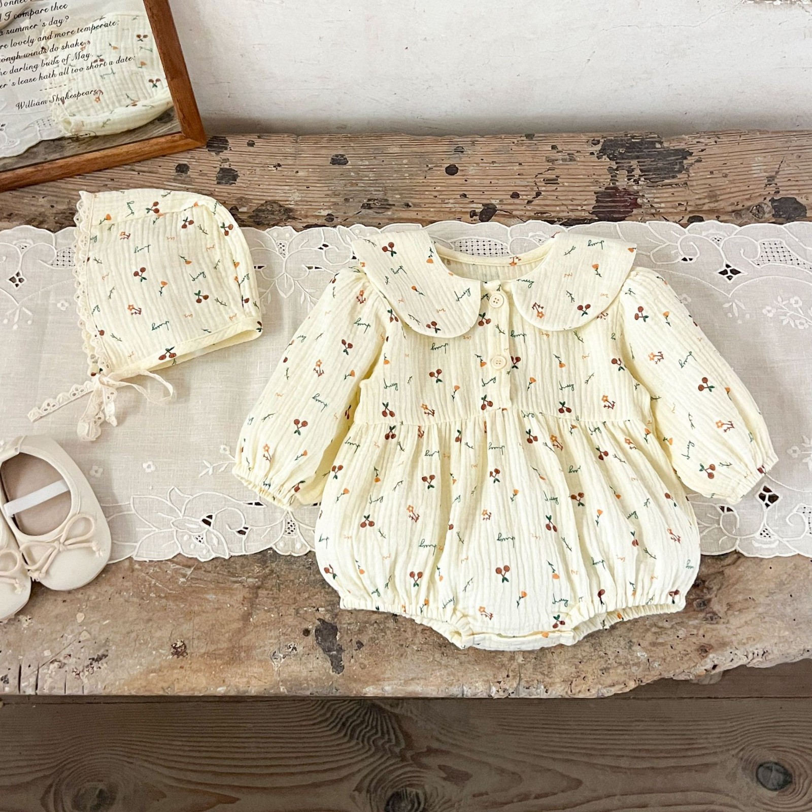 佛山佳祥贤服饰有限公司发布的ins女童宝宝娃娃领印花连帽哈衣婴幼童春秋季纯棉柔软花边连体衣图集库