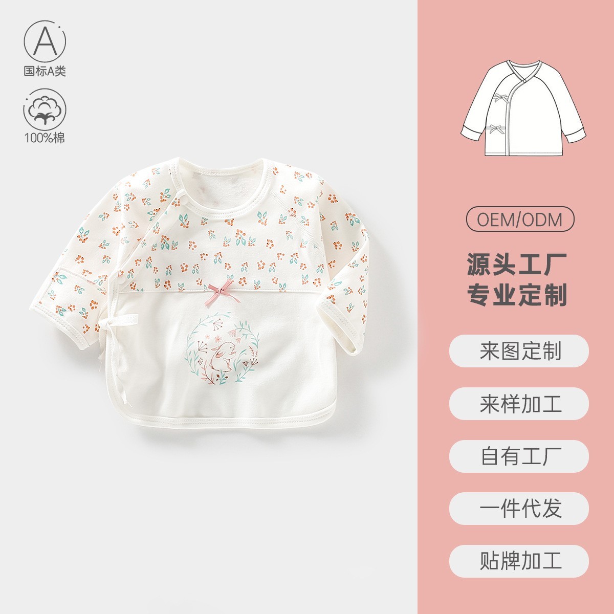 安阳俏乐虎服饰有限公司发布的春秋初生单件上衣a类全棉睡衣满月无骨四季款ins宝宝新生儿半背衣图集库