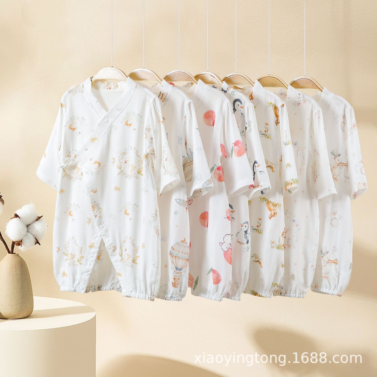 安阳市龙安区小颖童服装厂发布的婴儿纱布连体衣宝宝夏款超薄长袖纯棉哈衣儿童夏季空调服新生爬服图集库