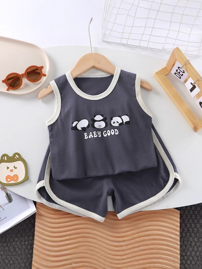 商丘市睢阳区贝贝衣服装厂发布的【定制】儿童背心套装宝宝夏季无袖两件套纯棉运动休闲衣服中小童图集库