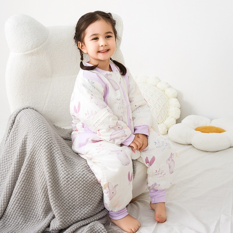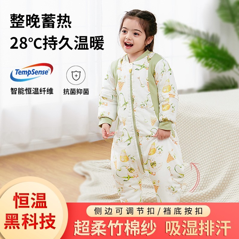 河南木晴服饰有限公司发布的夹棉儿童竹纤维分腿睡袋秋加厚婴儿恒温竹棉纱布宝宝抑菌睡衣A类图集库