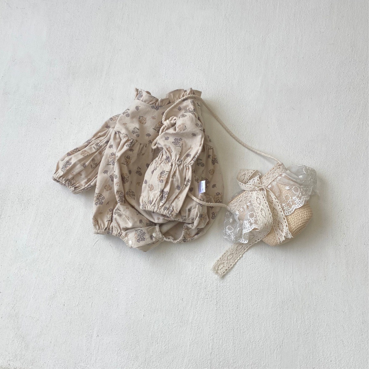 珠海久格服饰有限公司发布的2026春款婴儿复古碎花花苞领连体衣女宝宝甜美可爱包屁衣三角爬服图集库