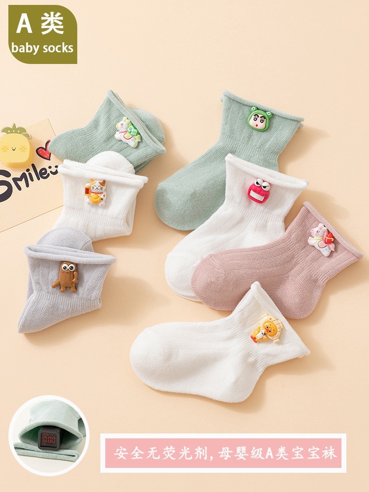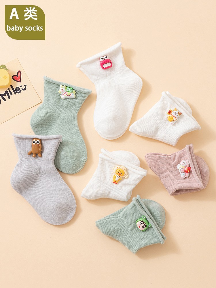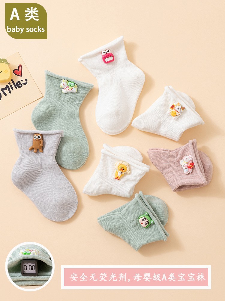 诸暨市雄踞针织有限公司发布的26婴儿春夏薄款a类棉宝宝松口不勒脚0-6-12个月中筒袜子图集库