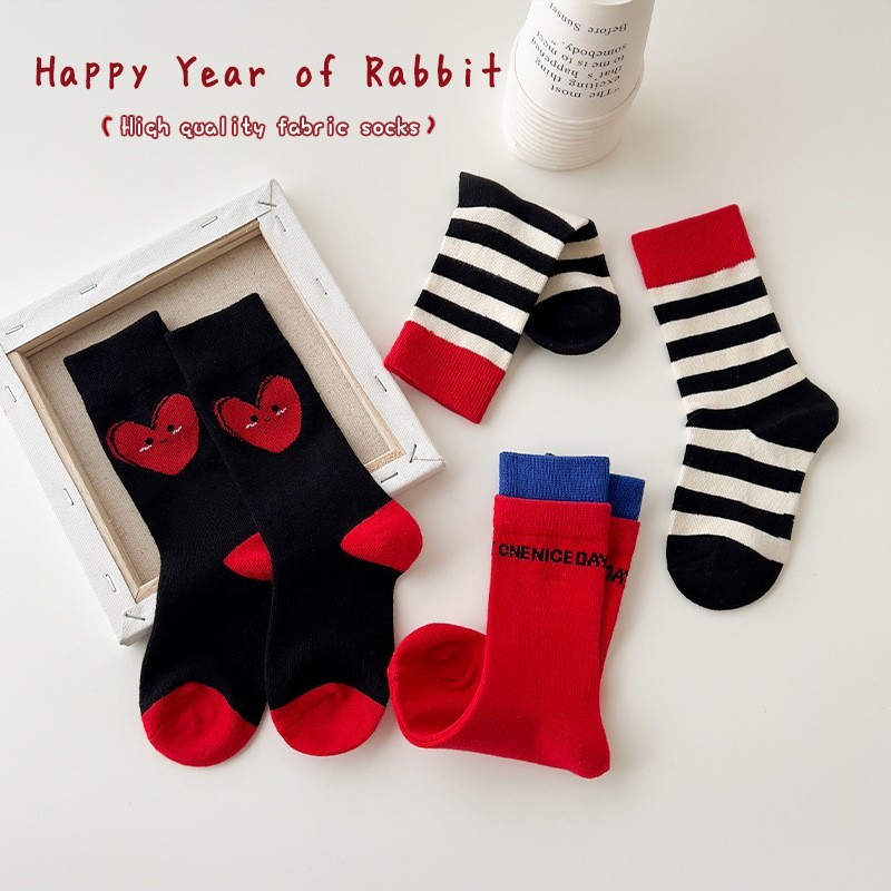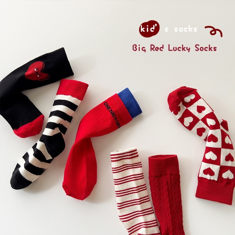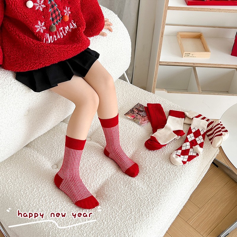 诸暨市金缘智能科技有限公司发布的儿童袜子秋冬季a类棉女童红色百搭圣诞袜女孩宝宝加厚舒适中筒袜图集库