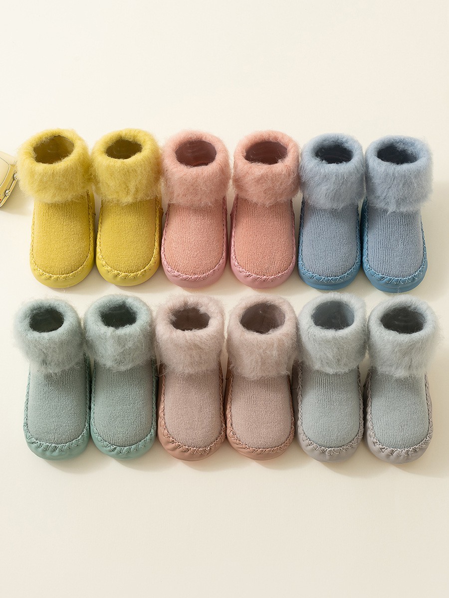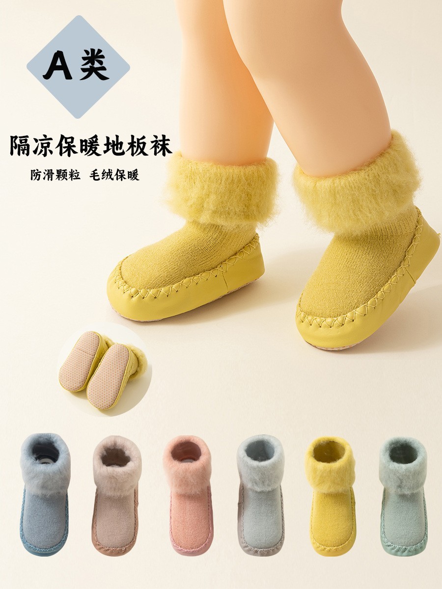 诸暨市冠天针织有限公司发布的25冬季儿童中筒地板袜宝宝加厚加绒学步袜室内防滑软底婴儿袜子鞋图集库