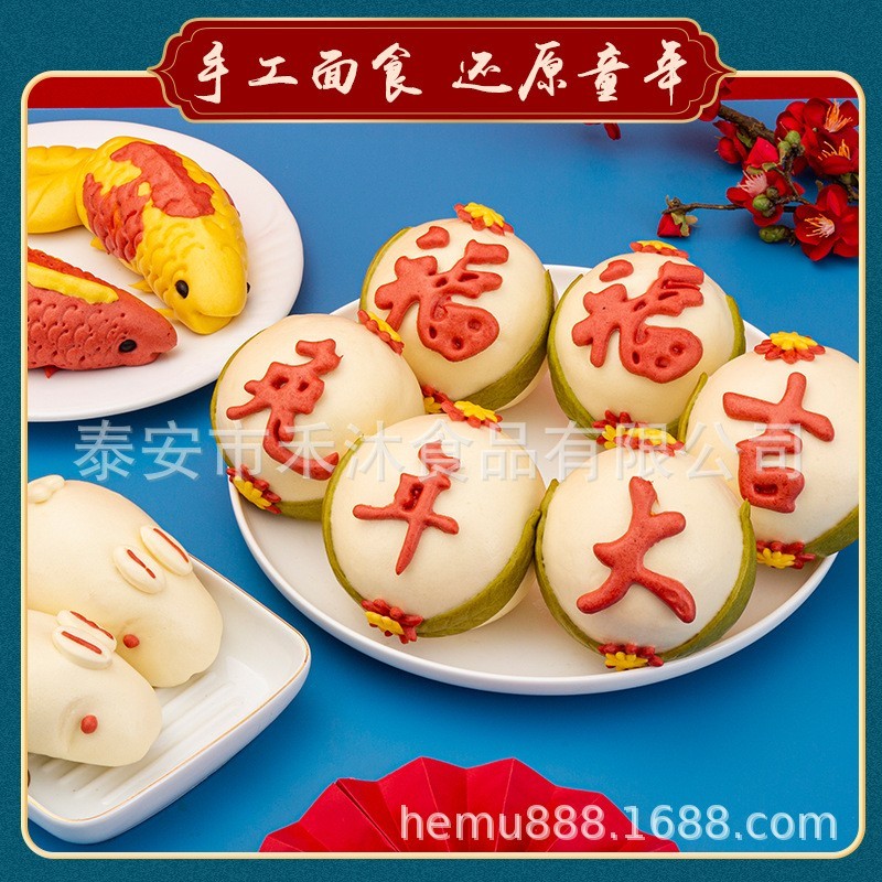 泰安市禾沐食品有限公司发布的胶东花饽饽兔年年货礼盒过年送礼长辈山东特产醒狮兔子锦鲤馒头,OEM代加工,贴牌加工,ODM定制图集库