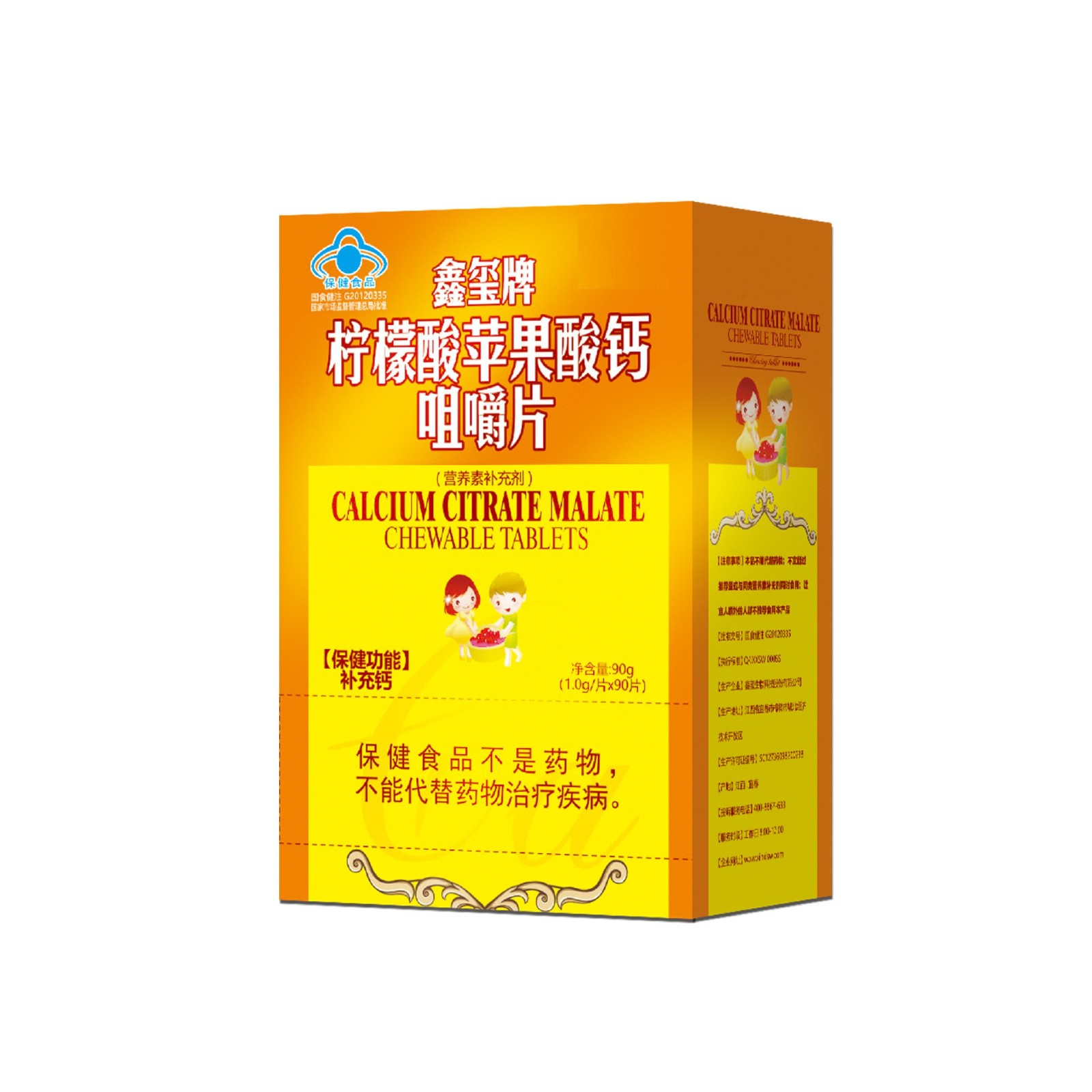 鑫玺生物科技股份有限公司发布的柠檬酸苹果酸钙咀嚼片钙片儿童成人成长钙铁锌儿童保健品蓝帽贴牌图集库