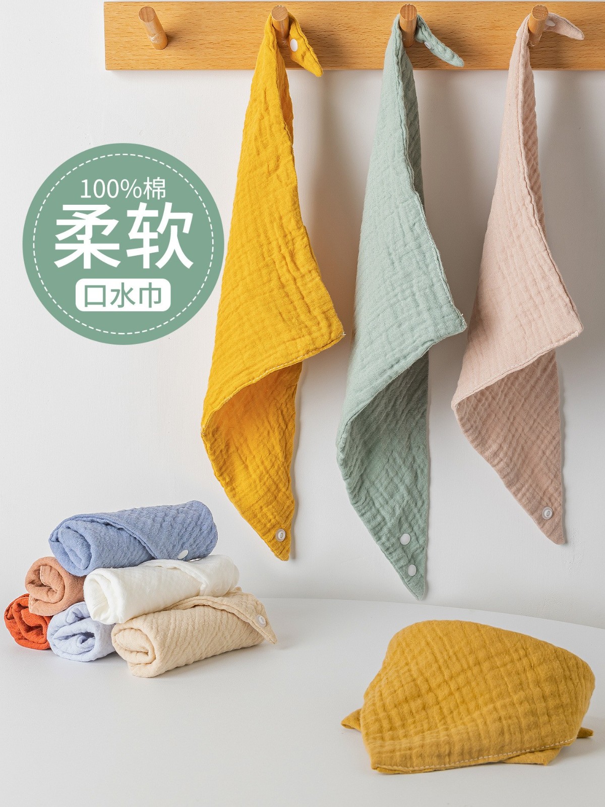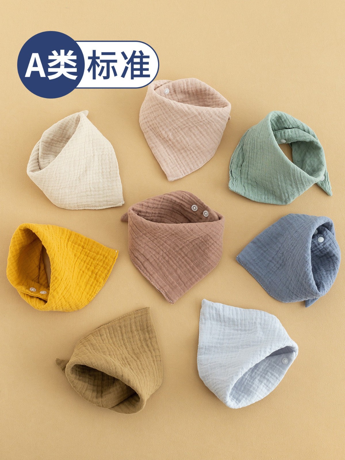 宁波市简米服饰有限公司发布的四层纱布口水巾婴儿纯棉围嘴吸水防污绉布婴幼儿宝宝围兜三条装图集库