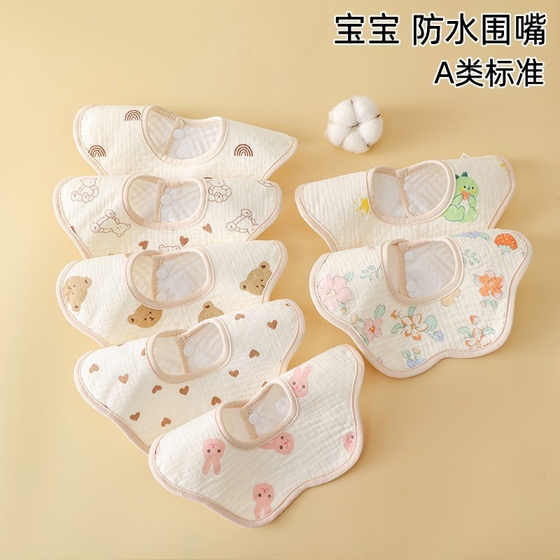 高阳县芒果针织品制造有限公司发布的新生婴儿纯棉纱布围嘴口水巾防水可360°旋转防吐奶垫男女宝围兜图集库