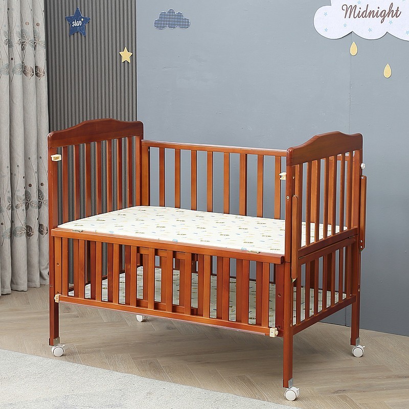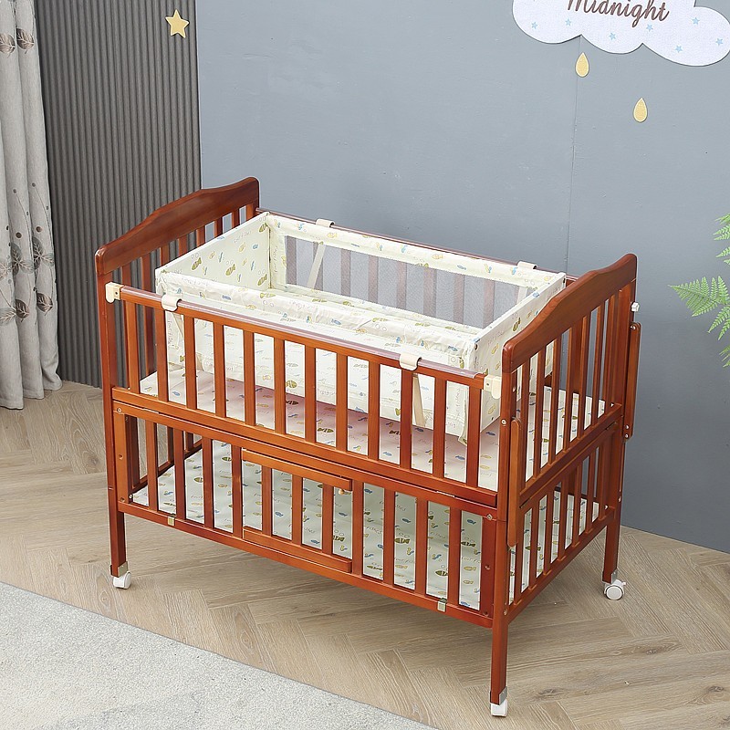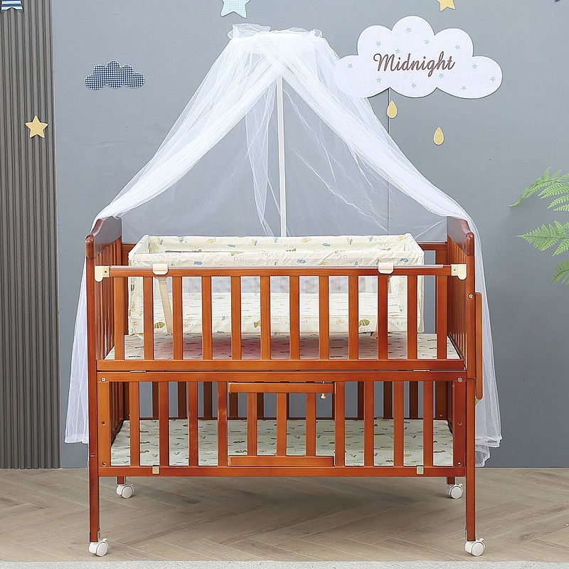 涟水县爱尔宝儿童用品厂发布的棕色婴儿床实木宝宝摇篮床双层带储物可加长儿童拼接床婴幼儿床图集库